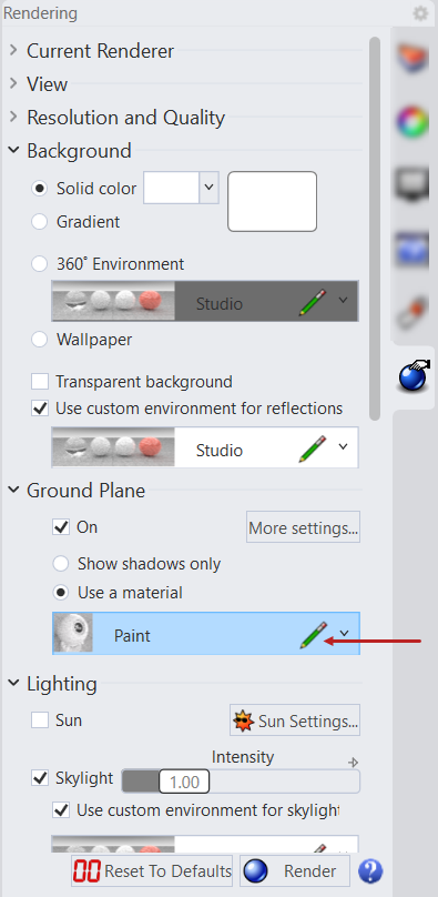 - In the panel, under Ground Plane, select Use a material. A dropdown menu appears.