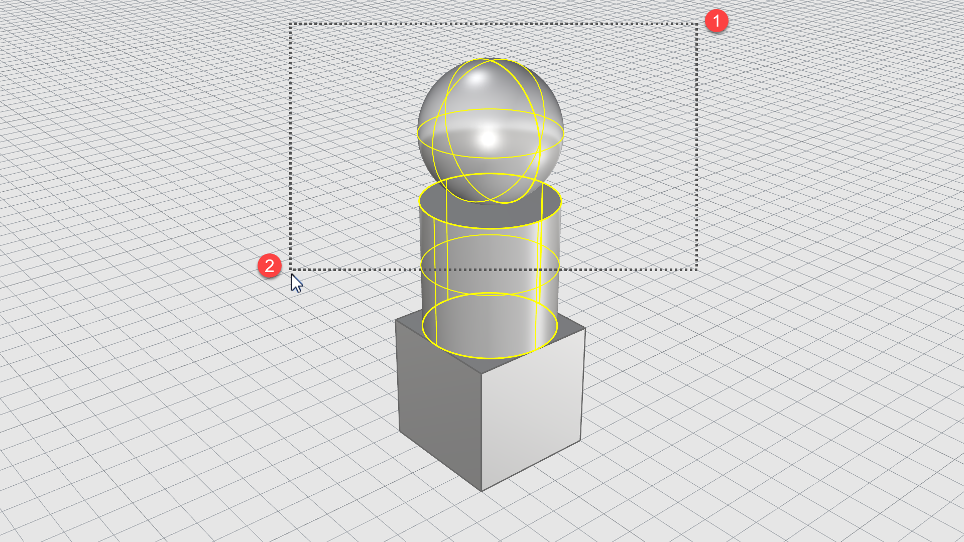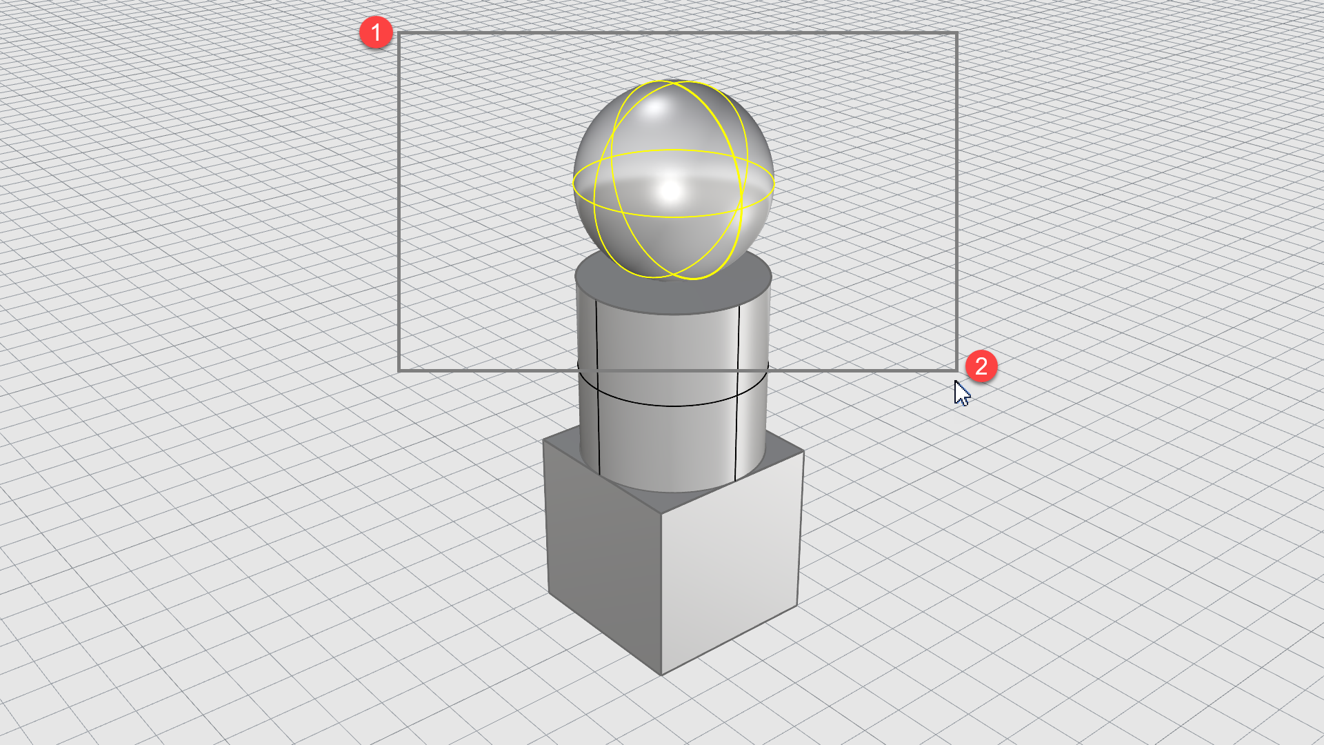 Now drag the same window as above, but this time right to left. Make sure the sphere is entirely inside and the cylinder only partially.