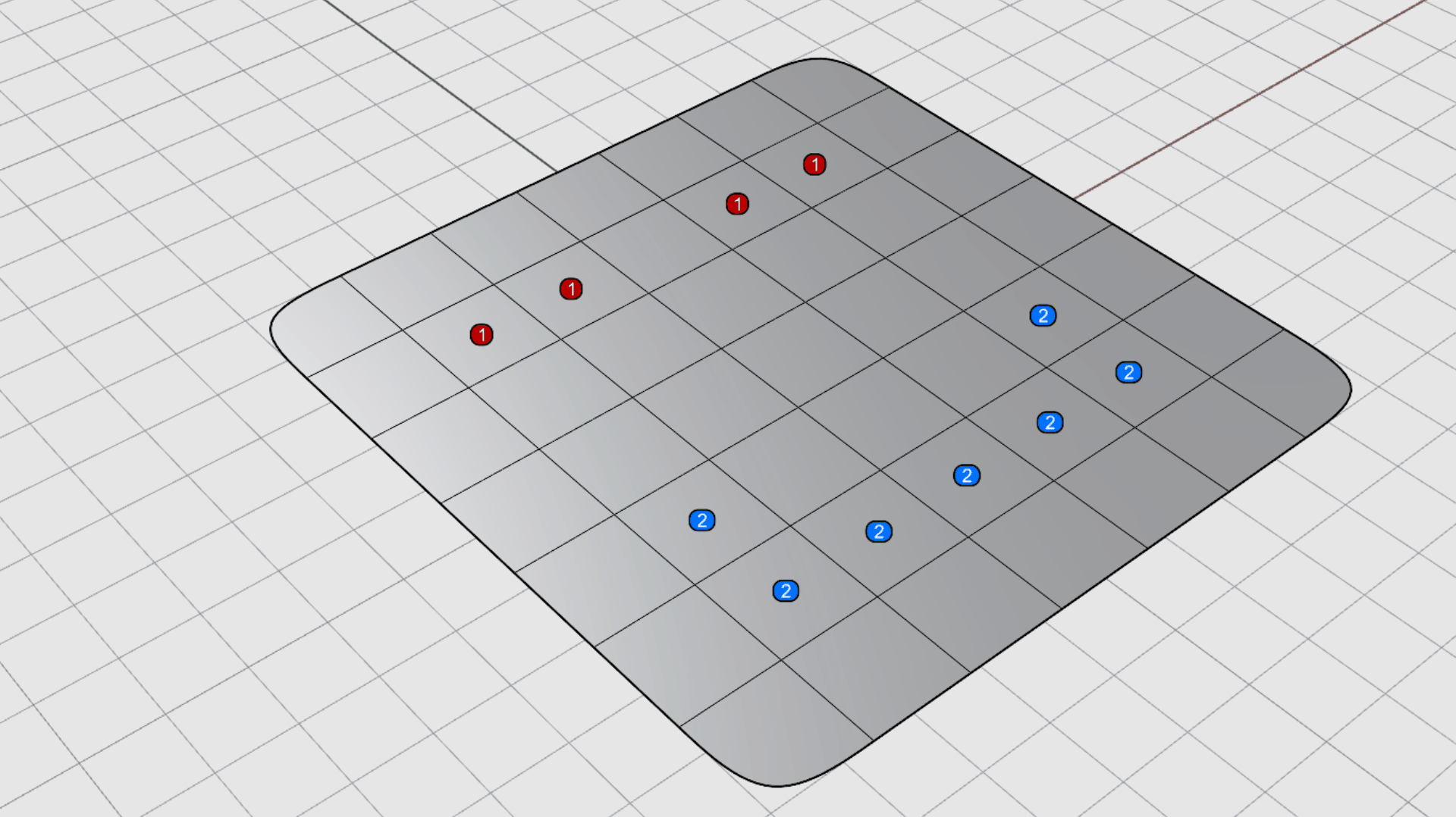 Rhino offers methods for quickly selecting rows of faces and edges. You can also select a range of these within a row. These methods comes in very handy when using sculpting techniques with SubDs.