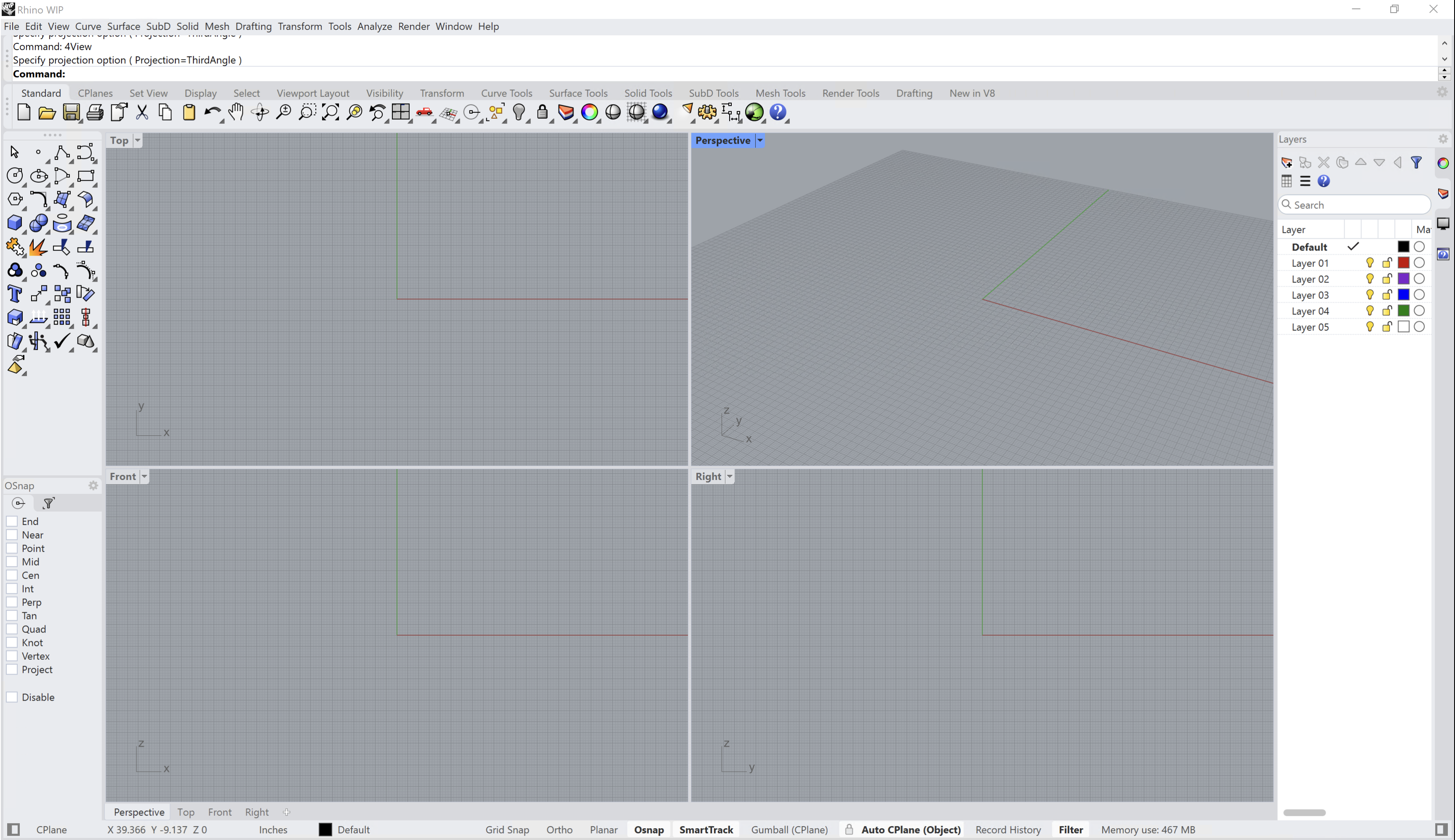 Window Layouts allow you to quickly configure Rhino’s interface to focus on the task at hand. Design your own to show only the tools you need.