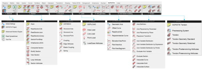 Grasshopper Toolbox: SOFiSTiK’s Grasshopper Toolbox provides components for creating parametric structural models, including geometry, cross-sections, supports, loads, and tendons, with analysis in Grasshopper or SOFiSTiK.