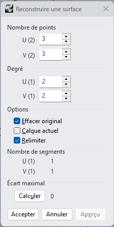 . - Dans la boîte de dialogue Reconstruire Surface, assurez-vous que les options suivantes sont sélectionnées, puis cliquez sur :