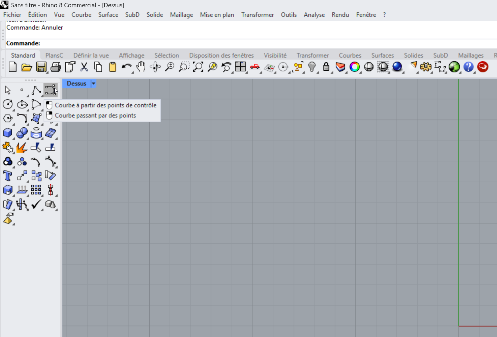 La plupart des commandes de Rhino se trouvent dans les menus. Nous allons créer un solide simple, en lançant la commande à partir du menu.