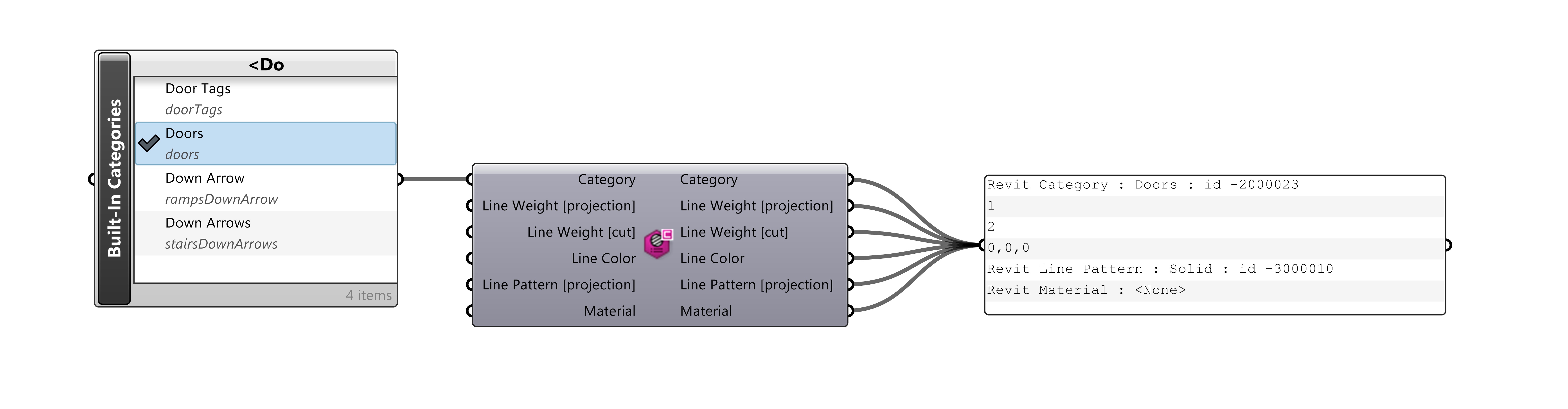 . This selector will list both main categories and built-in sub-categories that exist in every Revit file. Here this selected category is then run through the
