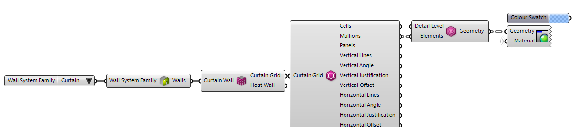 component shown above, can provide access to the Curtain Grid of a Curtain Wall instance. Curtain Grid can be used to extract information about the Grid, and access the individual Cells, Mullions, and Panels on the Curtain Wall: