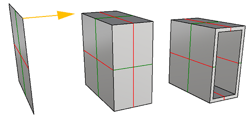 Dragging the arrow handle extrudes the object. With Shift, it extrudes in both directions.