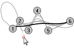 In the example below, the five curves have their control points at the same six points. Each curve has a different degree. The degree can be set with the Curve command, Degree option.