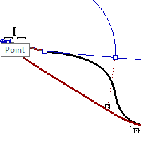 The curvature circle that appears on the curve indicates the radius of curvature at that location. The curvature circle results from the center and radius measured at that point on the curve. - Drag the curvature circle along the curve.