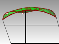 - Use the InsertKnot command (Edit menu: Control Points > Insert Knot) to insert a row of knots near the end of the white surface.
