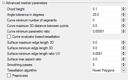 The advanced parameters are for expert usage only and are only exposed to allow users to test the internal POPLib meshing parameters directly. They are not documented here. Further information is available in the POPLib documentation.