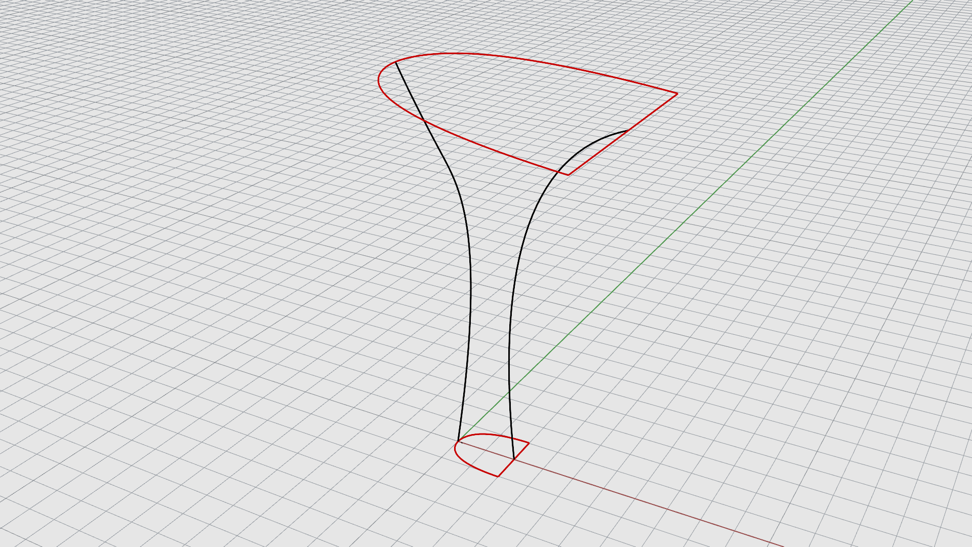 command. - At the Select first rail prompt , select one of the black curves. The order doesn’t matter.