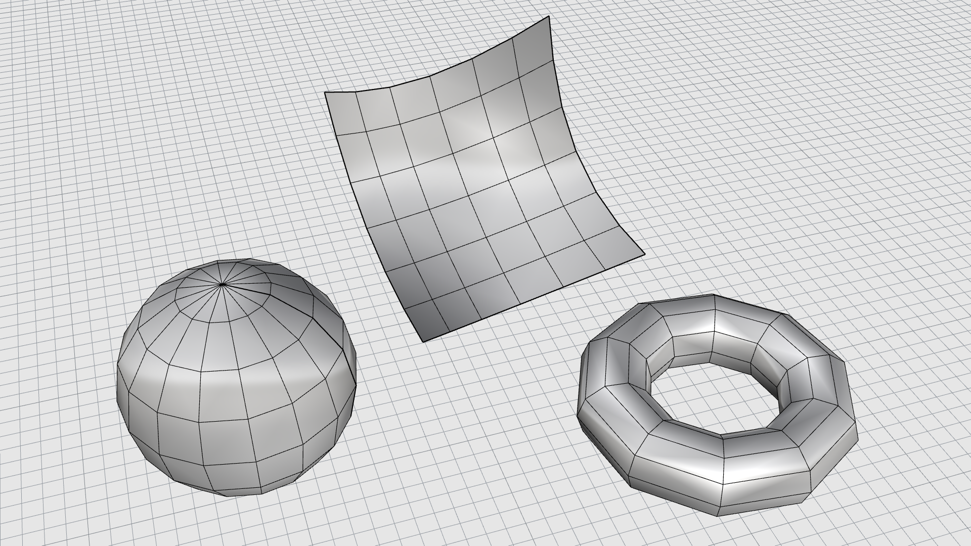 A mesh is a collection of vertices and polygons that define the shape of a polyhedral object. Meshes in Rhino consist of triangles and quadrilaterals. Just like NURBS , meshes can be open or closed (solid).