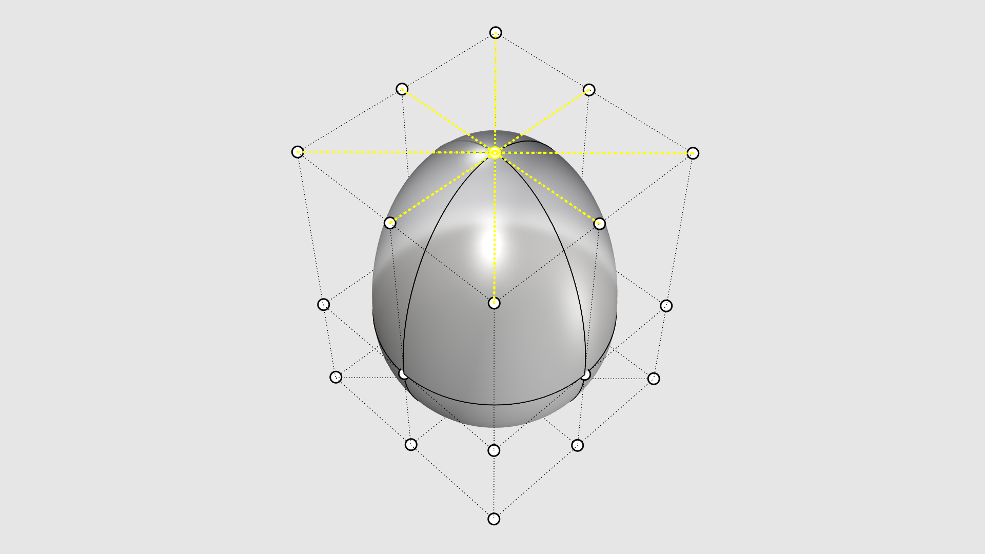 Let’s talk about the visible elements of a surface. An essential part of a surface is its Control Points structure. To visualize Control Points, select the object and press the key.
