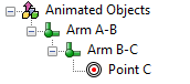 The Point C will be constrained to its position. This tells Bongo that the goal for this model is to keep this point in the same position. Now by pressing play the piston should start to move and the end point should stay in place.