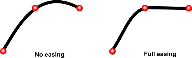 Easing can be controlled manually or it can be set to happen automatically when two keyframe points are aligned. When controlled manually easing is a value between 0 and 1. Easing of 0 means no easing at all and 1 means full easing.